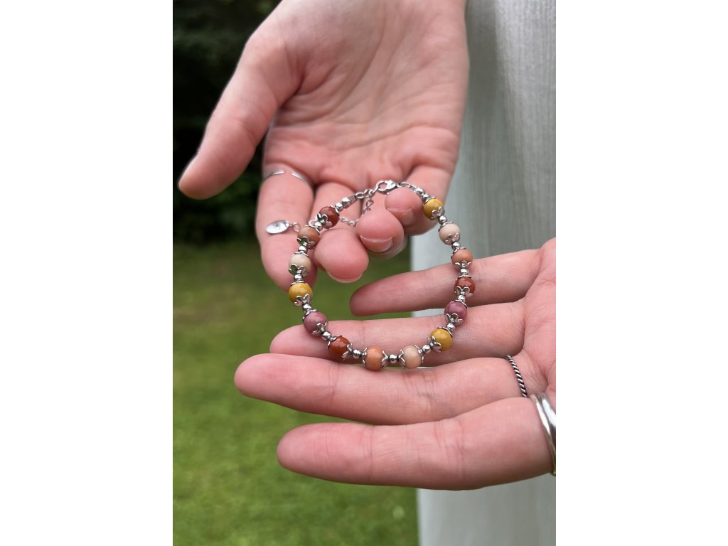 Velikost je univerzální díky zapínání s řetízkem s vygravírovanou afirmací (gravírování afirmace je malinkaté, je to jako tajná zpráva pro tebe, či zpečetění kouzla na ruce). Velikost korálků je přibližně 6 mm.