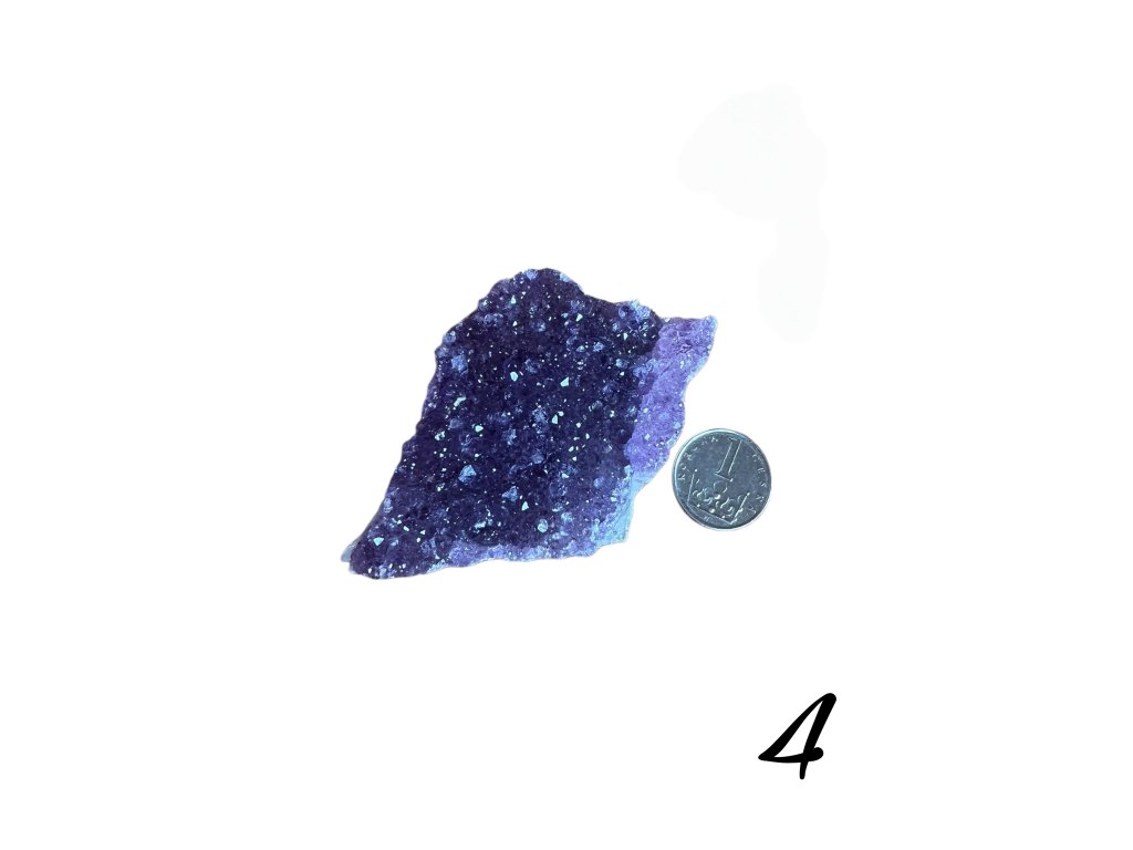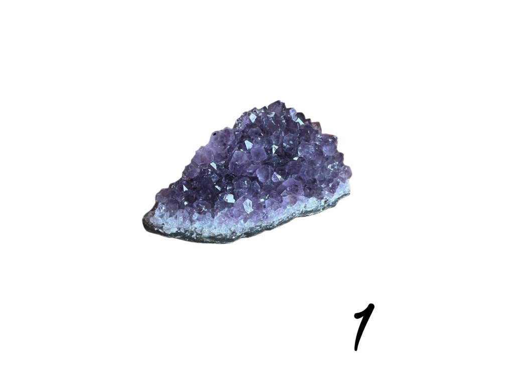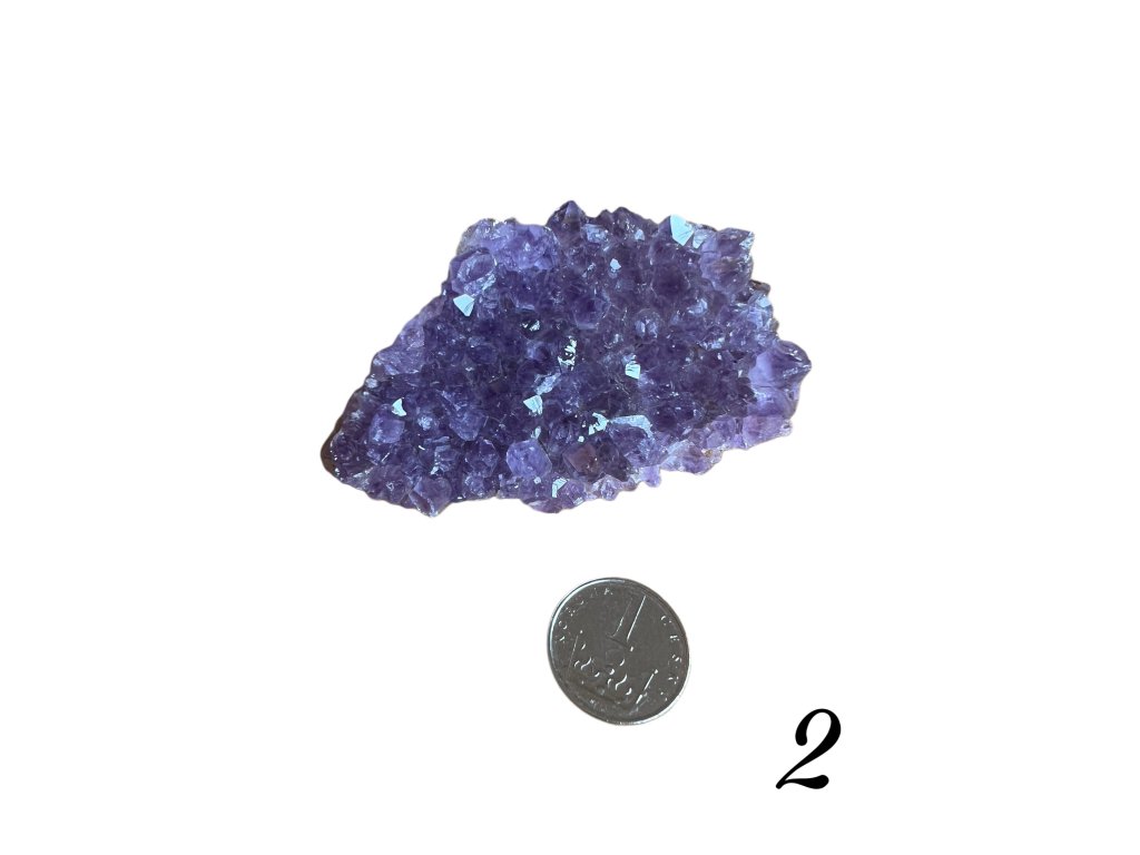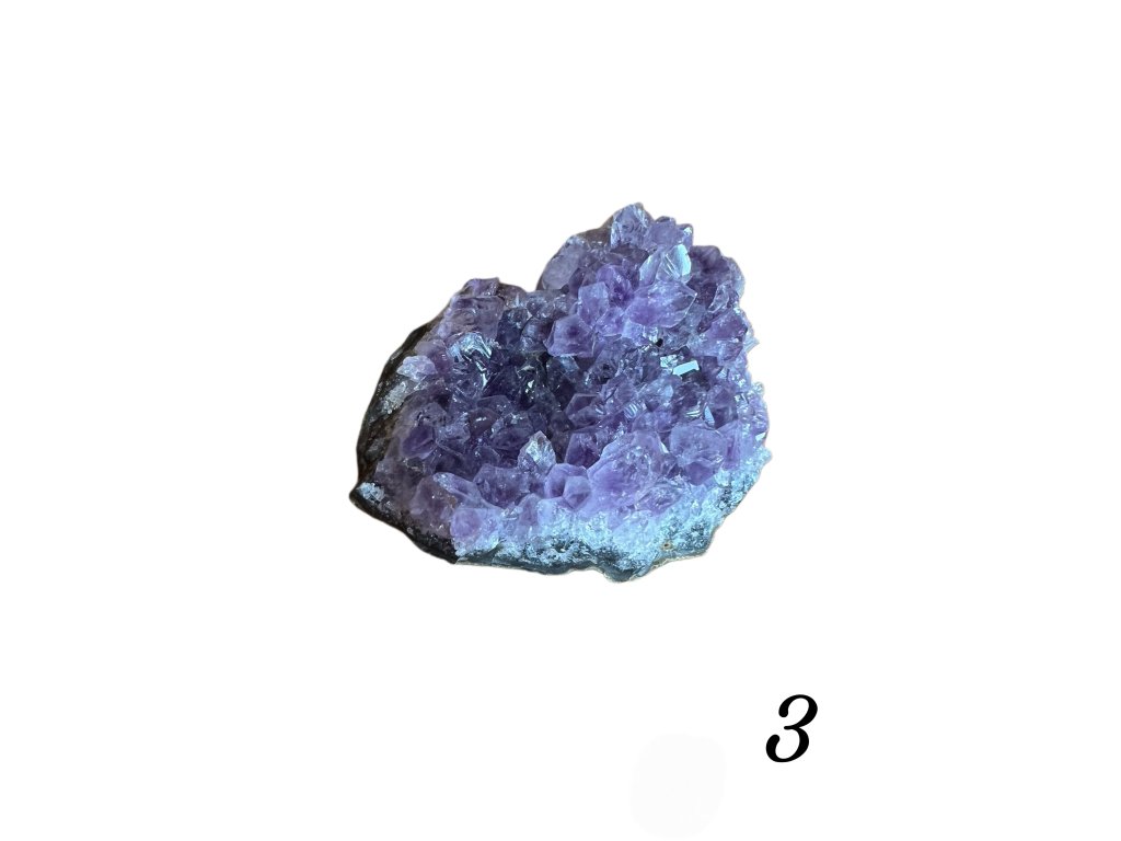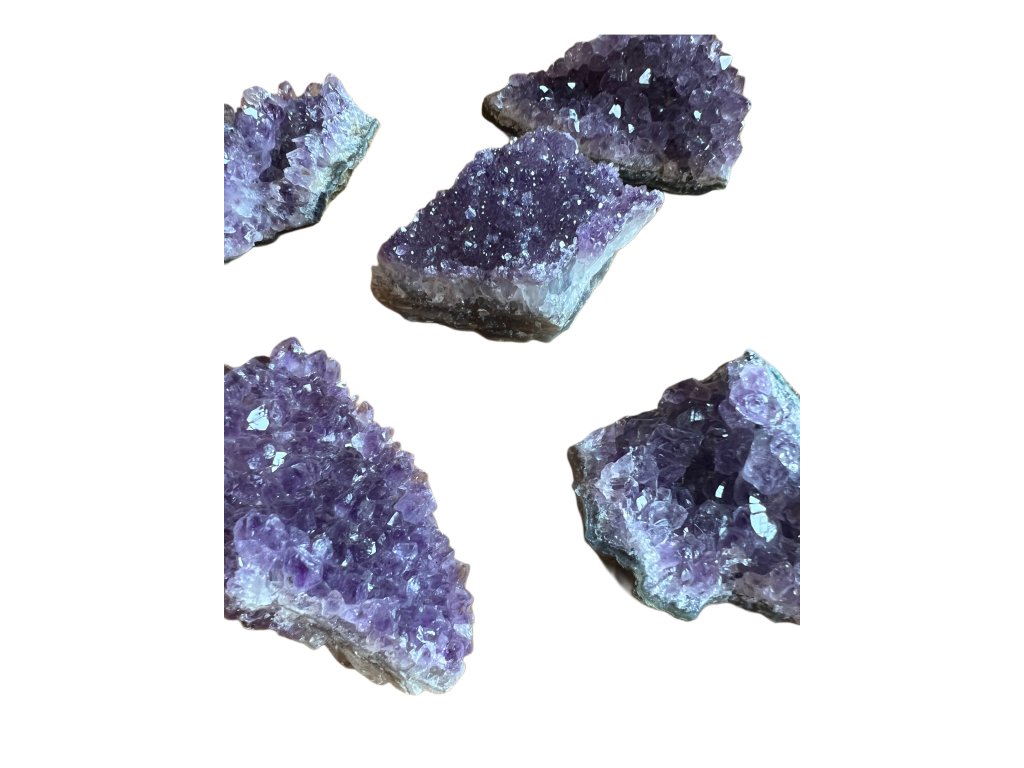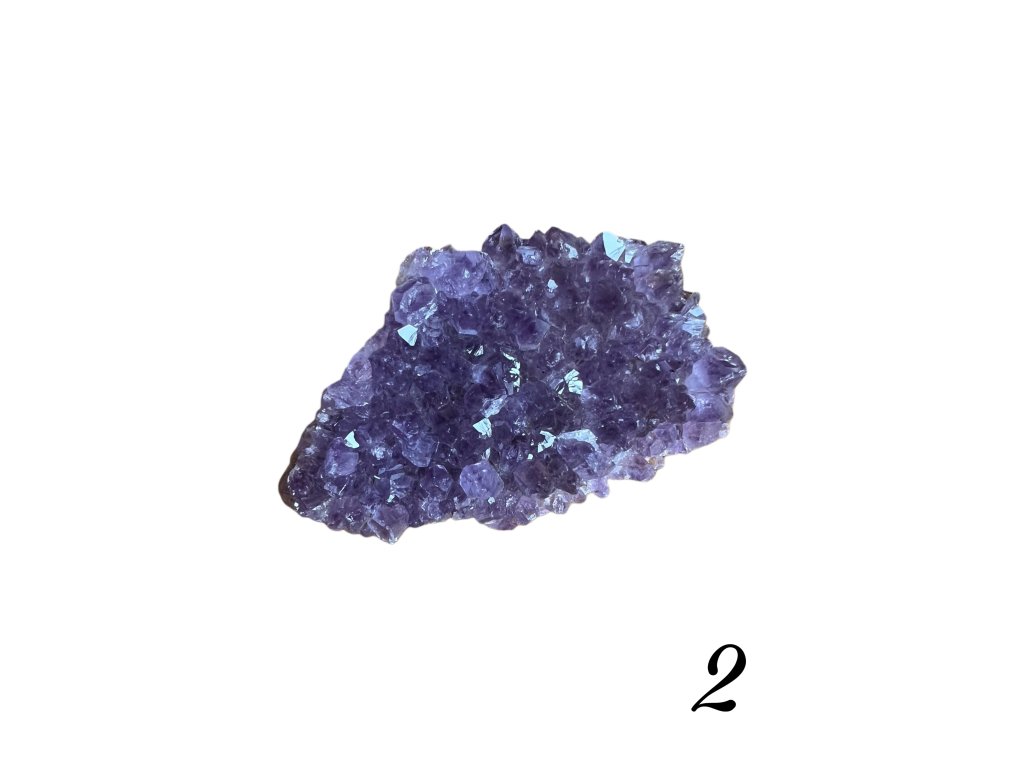 Ametyst – napomáhá ke koncentraci, disciplíně, vnímavosti, bdělosti, odstranění závislostí, posílení intuice, soucitu, dále očišťuje, kámen je velice vhodný pro meditace
