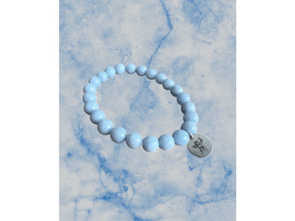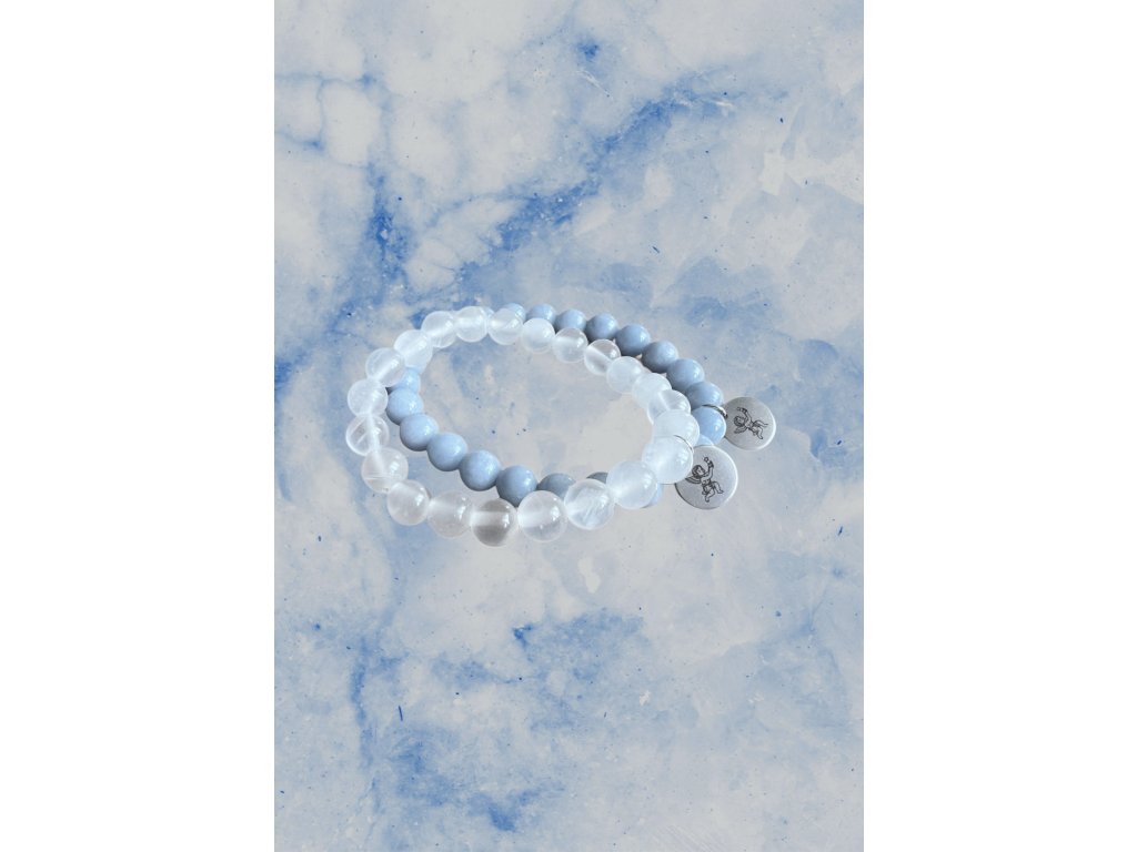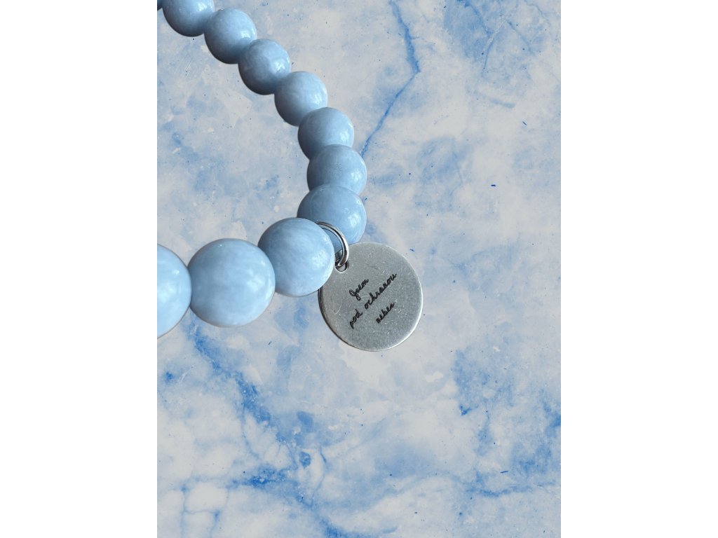 Angelit - kámen klidu a jemné ochrany, ztišuje mysl, uklidňuje emoce, podporuje upřímnou komunikaci, posiluje pocit vedení a bezpečí.
