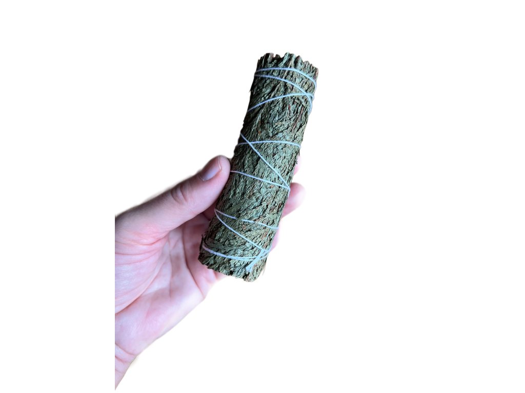 Cedr svázaný a k očistě kouřem připravený, k provonění tvého obydlí lesem nachystaný.