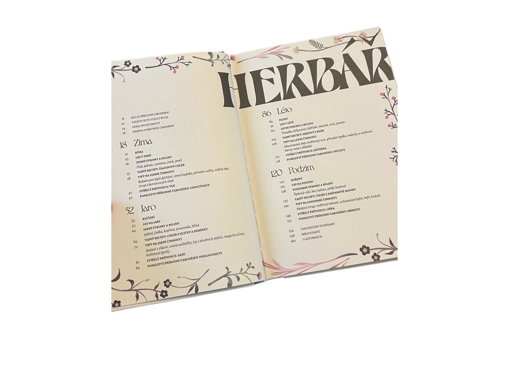 Tato kniha představuje jakýsi kalendář, který vás provede rokem přírodní čarodějky. Seznámí vás s ročními obdobími, jejich rostlinami, s kouzelnými a léčivými recepty a také zvířecími průvodci. Herbář vám pomůže propojit se s lesem a jeho jemnou energií.
