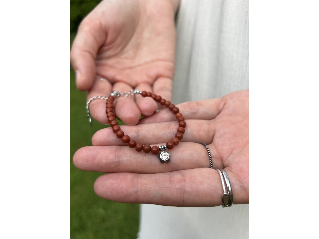 Květinový náramek s červeným jaspisem a nerezovou ocelí.