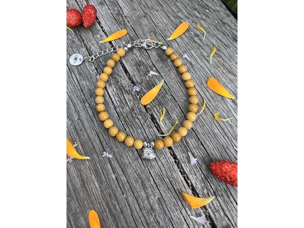 Květinový náramek s jaspisem a nerezovou ocelí.