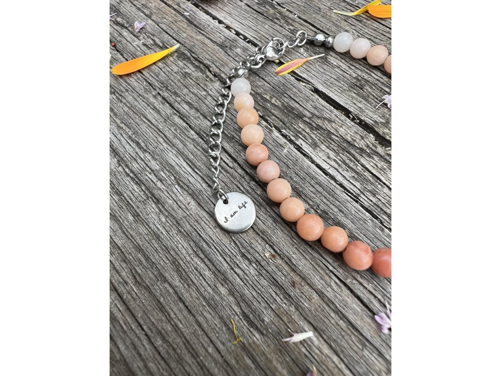 Velikost je univerzální díky zapínání s řetízkem s vygravírovanou afirmací (gravírování afirmace je malinkaté, je to jako tajná zpráva pro tebe, či zpečetění kouzla na ruce). Velikost korálků je přibližně 4 mm.