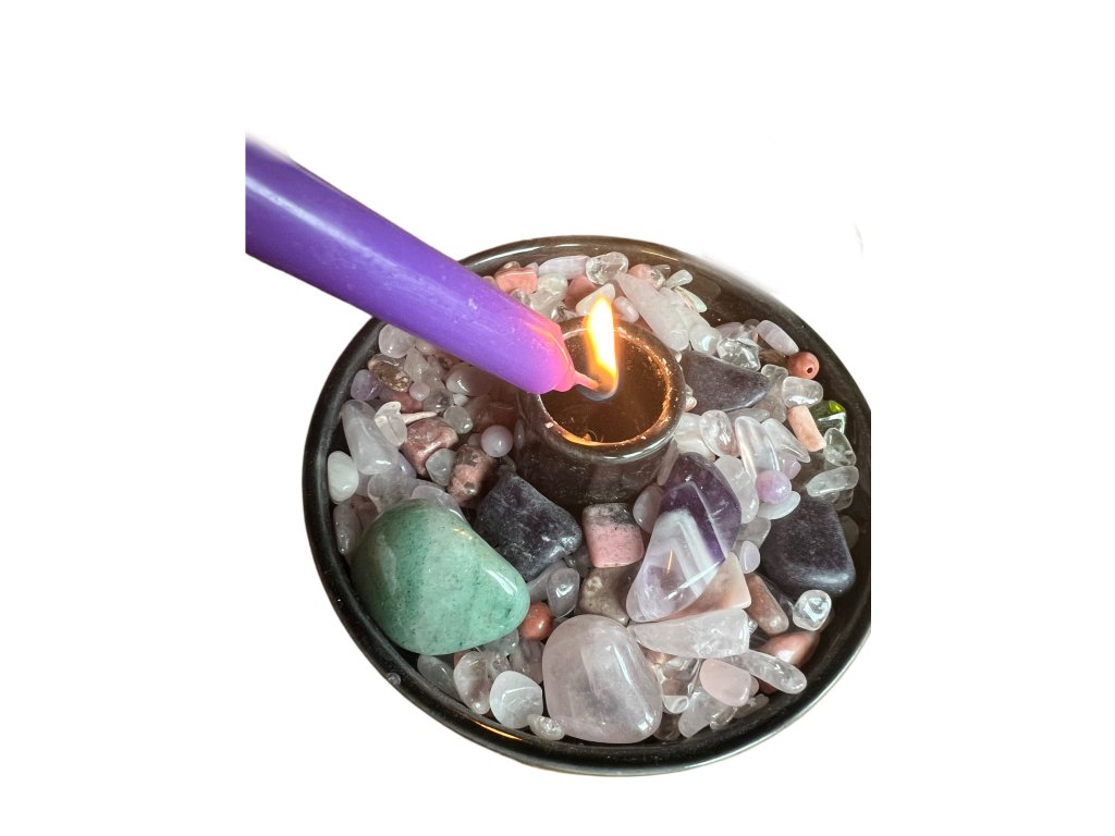 Keramický svícen vhodný pro rituály s prostorem na šutříkové konfety a kamínky.
