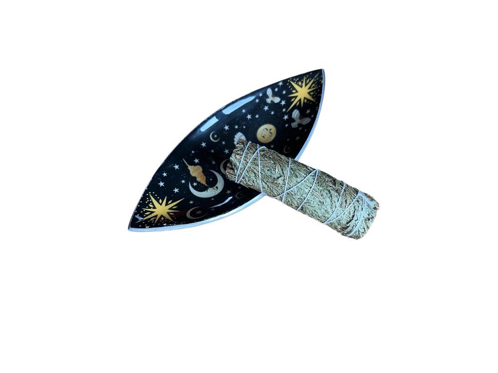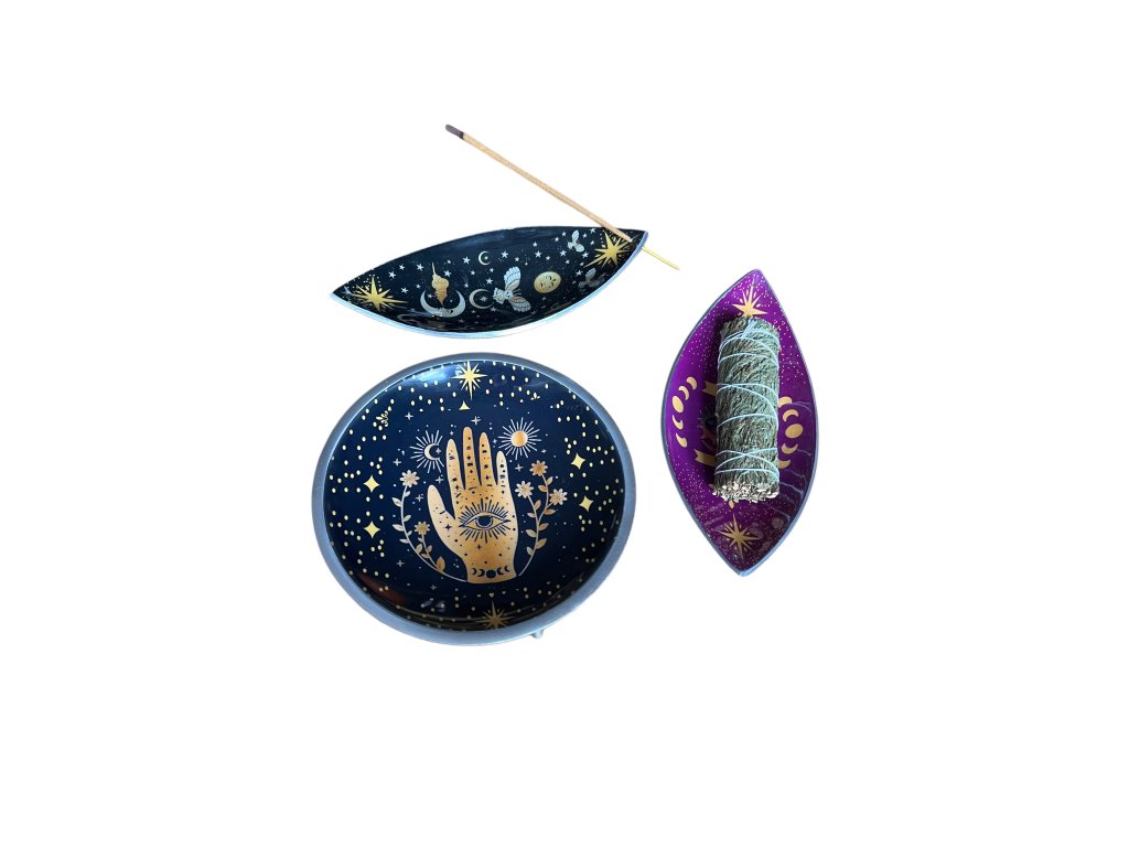Smaltovaná miska/stojánek na vykuřovací svazky a vonné tyčinky.